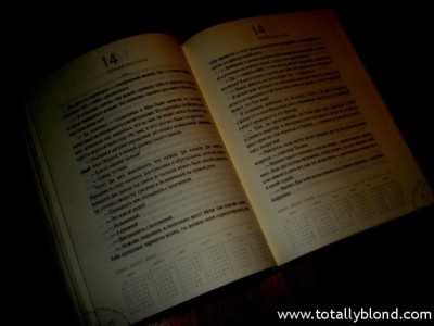 Первое, что привлекло меня, когда я получила книгу в руки — её дизайн. На обложке красуется синяя Birkin, которая красной нитью проходит через весь роман. Внутри книга выполнена в виде ежедневника, остановившегося на дате 14 января, пятница (очевидно, это был 2011 год).