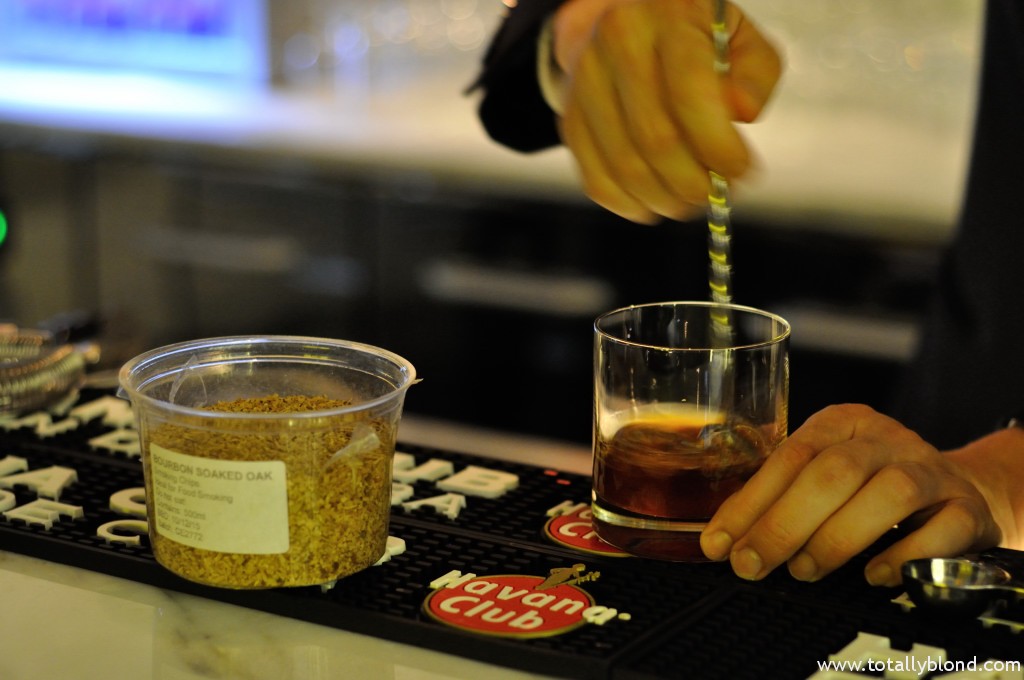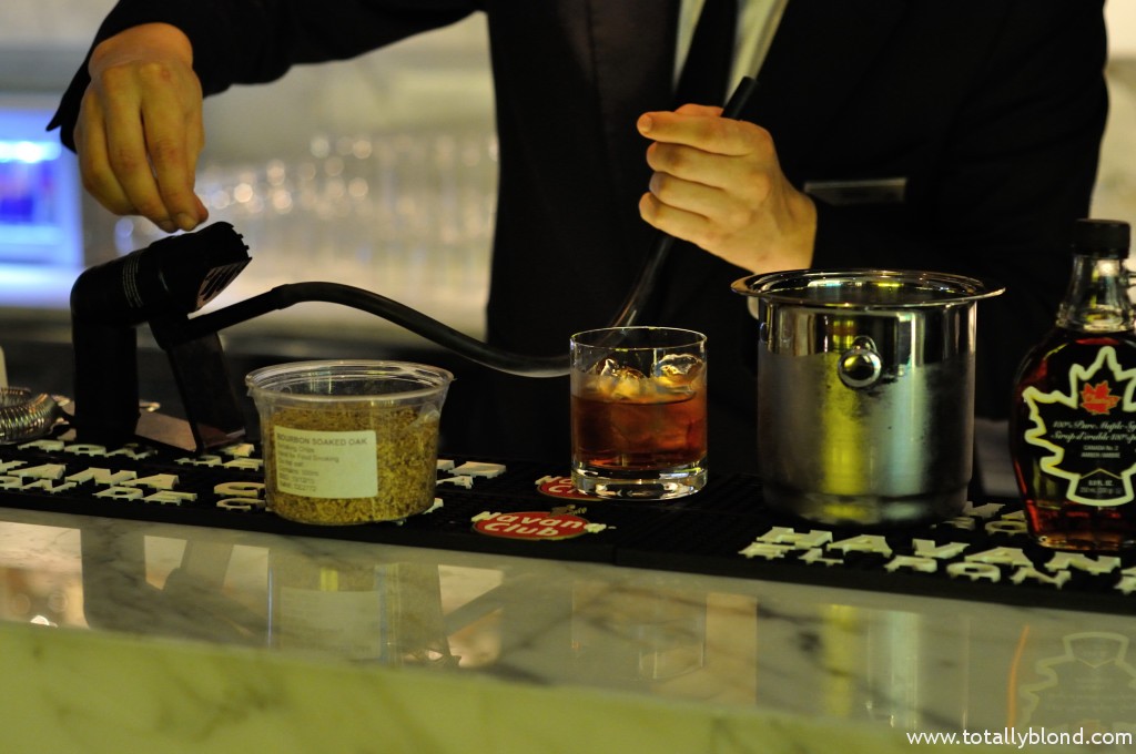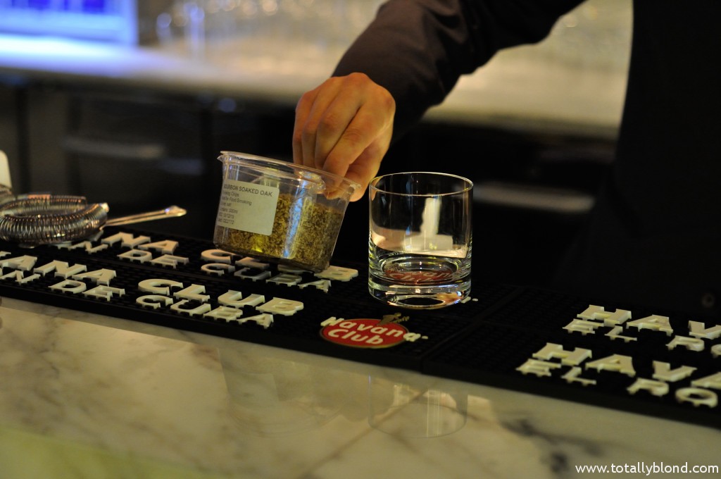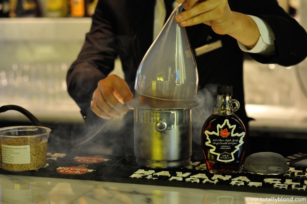 В молекулярном варианте в «Олд фешнд» вместо сахара используют кленовый сироп, который придаёт особое послевкусие. Кстати, этот сироп является первым импортируемым продуктом из Канады. Приготовление коктейля длится около двух минут и главное тут — перемешивание ингредиентов, чтобы лёд мог слегка подтаять и смягчить крепость виски. После чего и начинается вся молекулярная магия: стакан ставят в ведёрко со льдом, накрывают вычурным стеклянным колпаком, под которым плотный густой дым из тех самых опилок около 30 секунд насыщает напиток ароматом. Вы должны это увидеть, попробовать и обязательно запостить в Instagram!