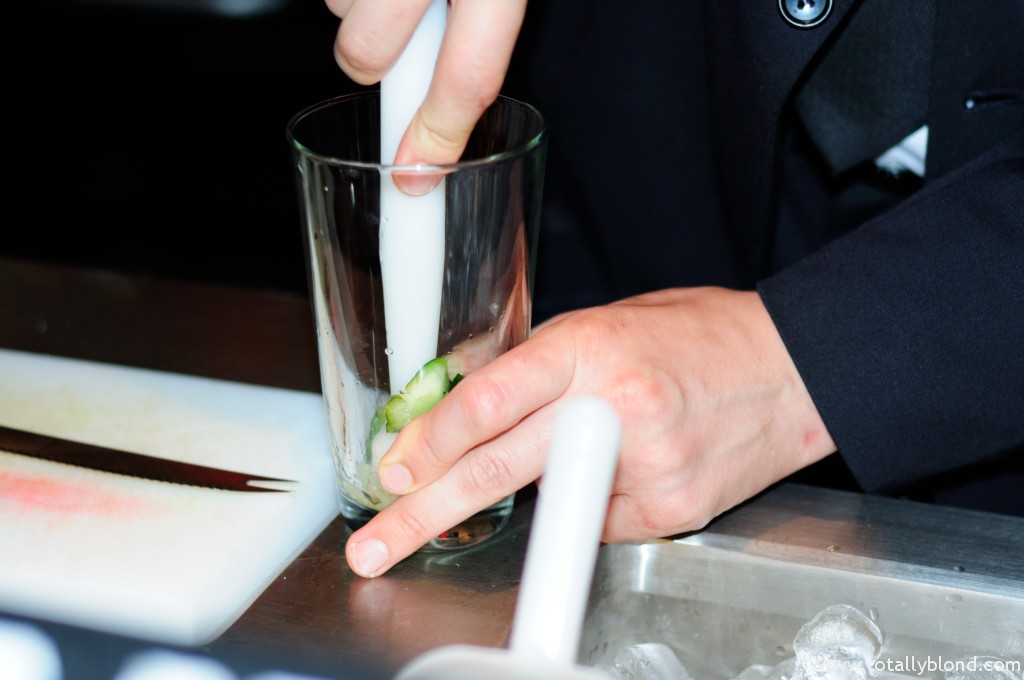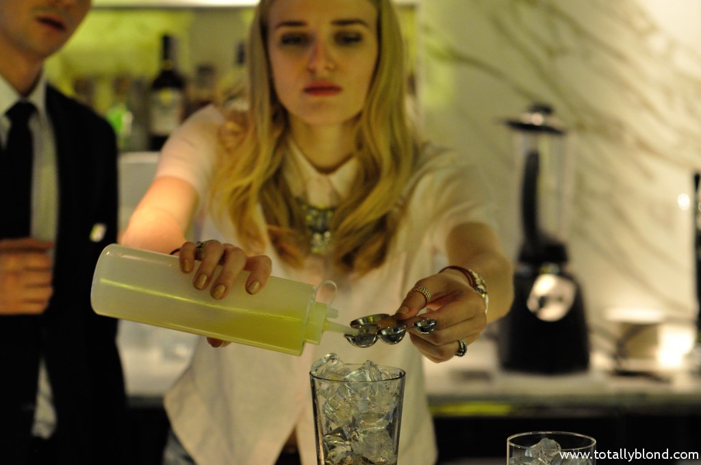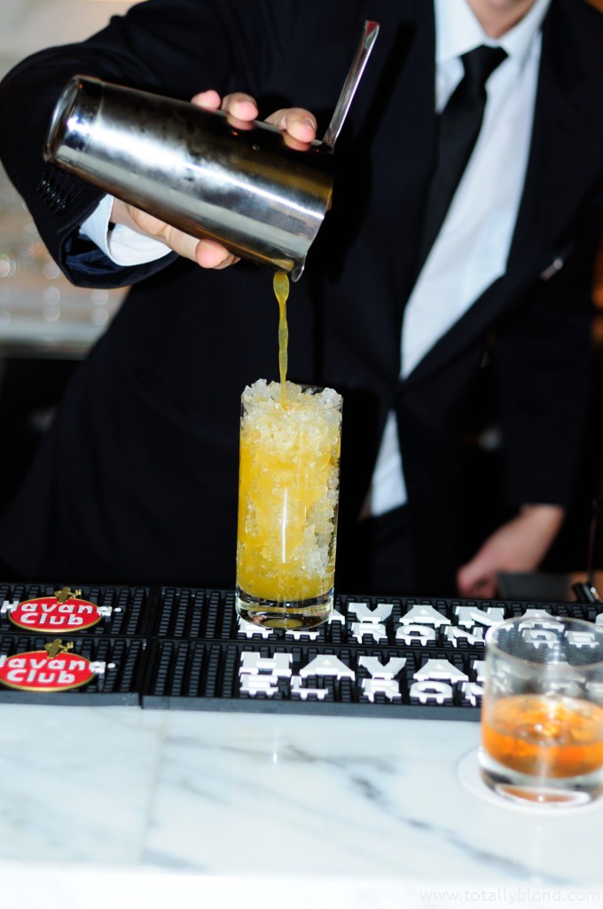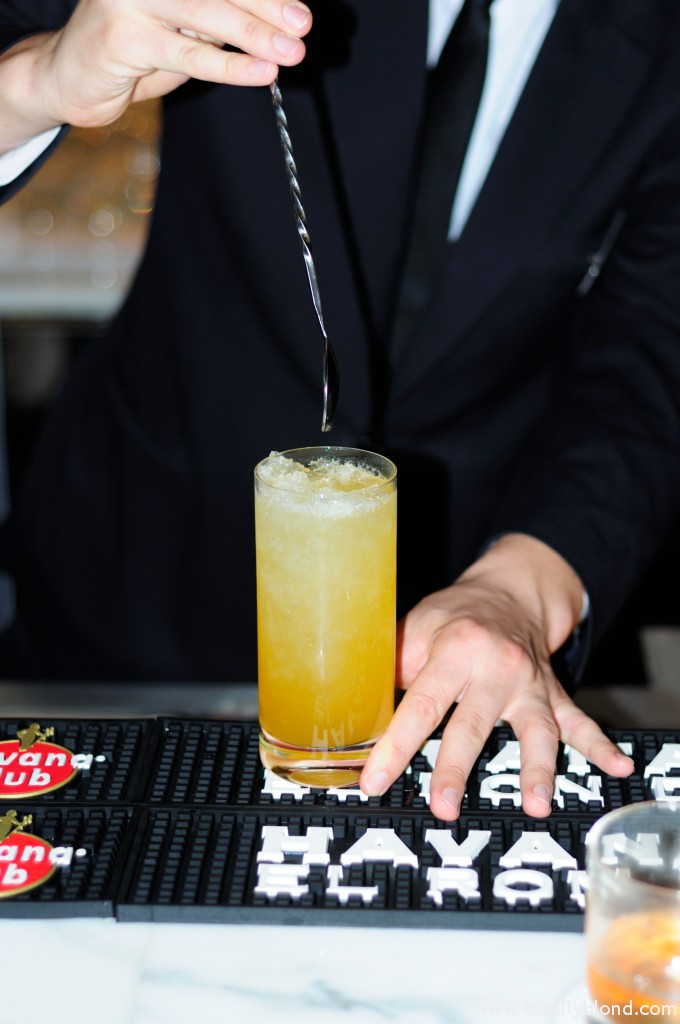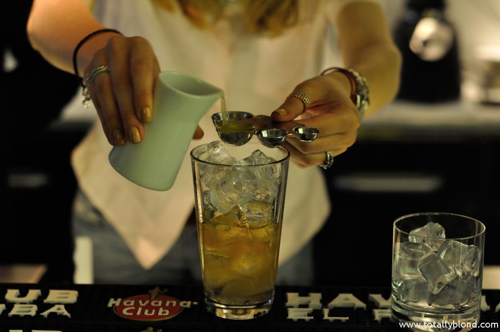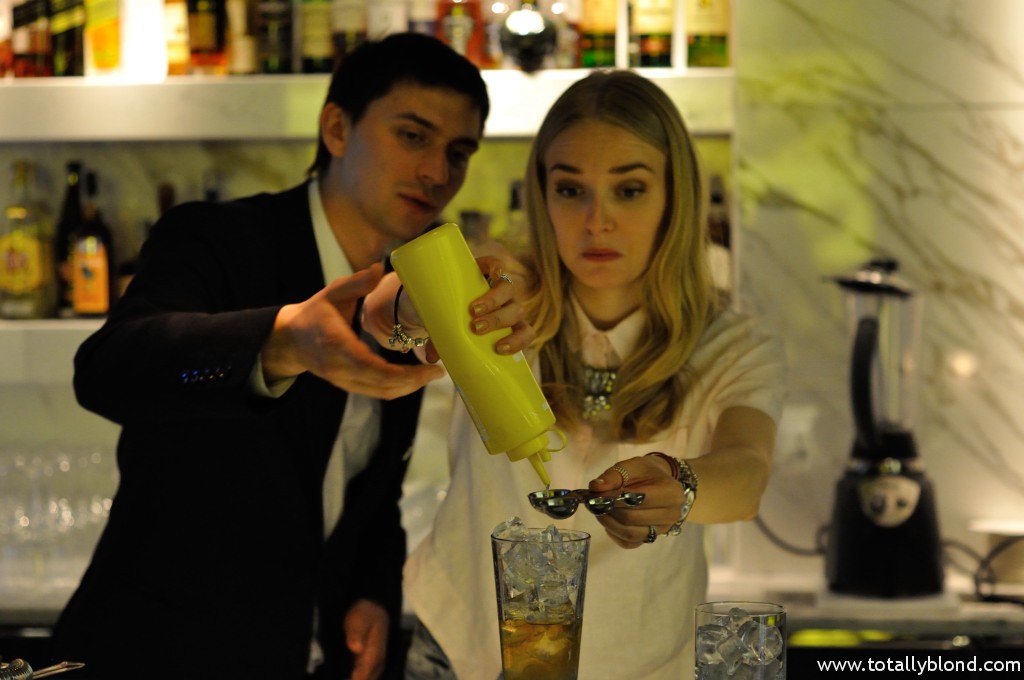 Вторым на очереди у нас был Whisky Sour (100 грн.), который мне разрешили приготовить за барной стойкой под чётким руководством Дмитрия Шевченко — администратора бара и моего экскурсовода в мир H Bar. Я, как настоящая жадина, везде не доливала, потому Диме приходилось постоянно приговаривать: «Ещё!», но в итоге получилось весьма неплохо. Особенной изюминкой «Виски Сауэр» является лавандовая пена, которая добавляется в самом конце и готовится непосредственно в H Bar, и виски с шотландского острова Айлей, которые славятся заметным торфяным «копчёным» привкусом. Я вдруг поняла, что работать в баре я смогла бы только в качестве дегустатора, уж слишком это хлопотная работа, у меня ручёнки слабоваты, чтобы качественно смешивать коктейли в стакане.