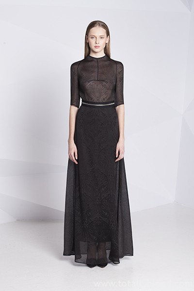 В коллекции осень-зима 2014-2015 использованы непревзойденные итальянские ткани: воздушные вечерние платья и накидки из шелковой органзы Teseo с вензельным узором и жаккардовым переплетением, классические блузы из шелкового шифона Ruffo Coli. Значительная часть образов из осенне-зимней линейки выполнена из мягкой шерсти ягненка Colombo с небольшим стрейч эффектом. Утилитарные куртки, лаконичные жакеты прямого кроя, элегантные приталенные жакеты с басками, пальто, юбки-карандаши, юбки с воланами и складами, созданные из благородной шерсти французского производителя Dormeuil, составят выигрышную партию поклонницам женственных образов и украсят панораму любого большого города.
