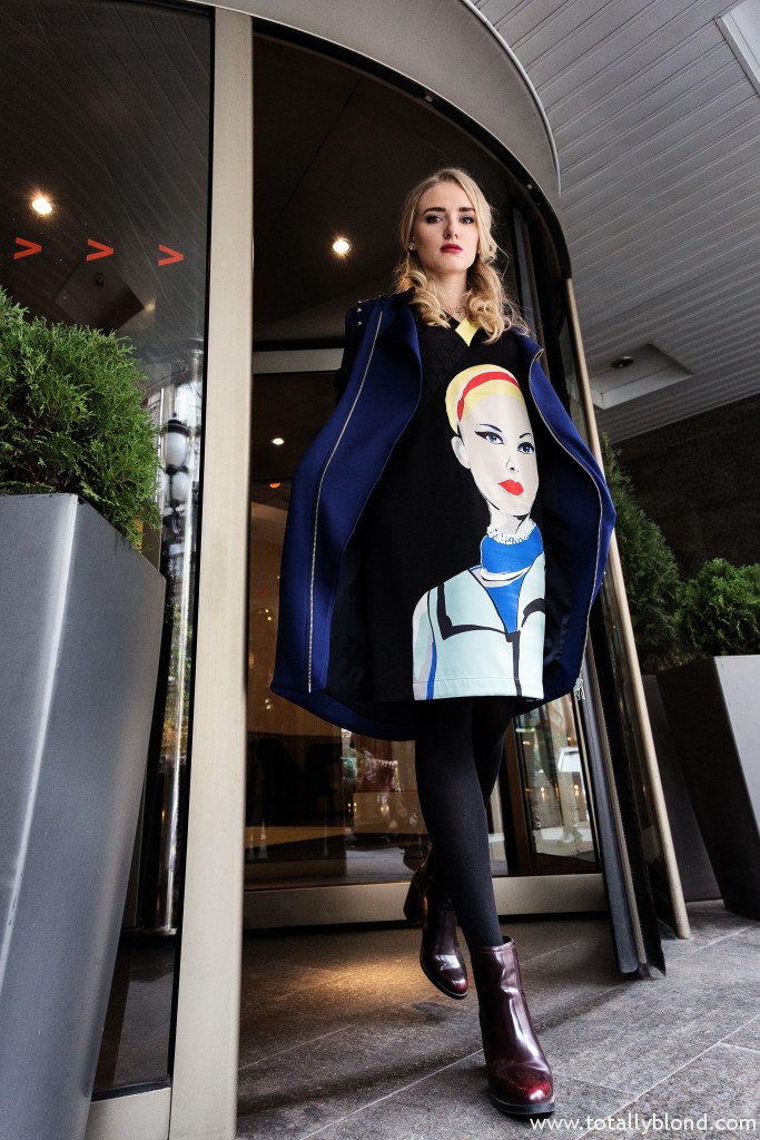 У нас было два прекрасных платья LATTORI, которые разбавили своими яркими красками немного серое киевское утро. Первое — с лицом девушки, которая довольно сильно напоминала меня, собственно, потому я его и выбрала. приятная ткань, необычное оформление плечиков и строгий, но нескучный силуэт делают его вполне базовым нарядом и «изюминкой». На званый ужин, конечно, не отправишься, зато на коктейльную вечеринку — легко!